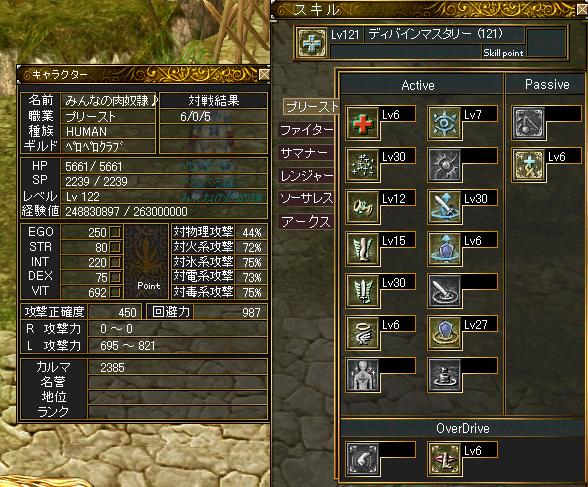 きょ~おわ~~、お古のウサミミDP,修道士DP,なべDP強化してみました。 もうもえろおおおおという勢いでしてこんな感じに 修道士は30%使用したのに燃えました(´・ω・`) まぁ、5月になればDP10個は手に入るのでそれで鎧は作っちゃいます。 今現在の骨DPはこんな感じ 封印の場合、SP多くしたら短いクリックでも多くSP使うじゃないですか? だから14までLvSPつけたいです。 14ついたらSP3.5kになると予想 ついでですしステ振りをお見せ致しましょう。 頭できたらINTを全部EGOにまわそうかなと計画中です。 ではこの辺でヽ( ´ー`)ノ