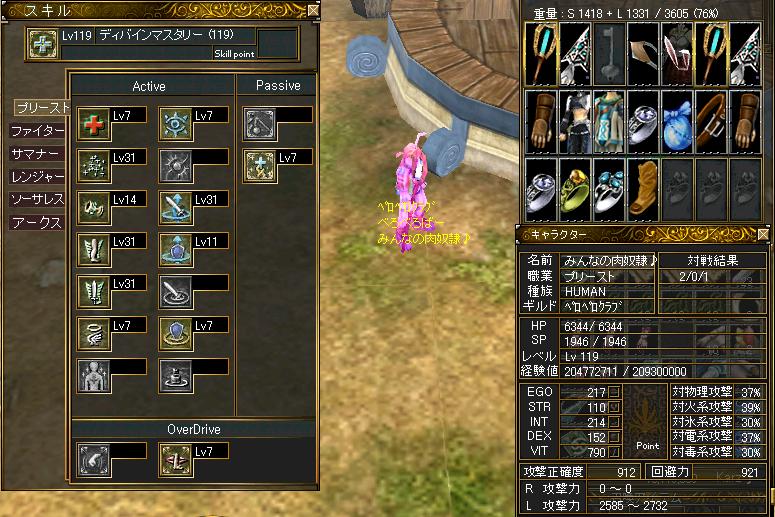100~115になったときと同じくらい時間かかったw まぁ、適正でうま~の狩場がないLv間ですしね。 サハド方面適正までガマンガマンヽ( ´ー`)ノ 125くらいからかな? ちなみに塔3F(自分のみのとき)でWチケで時給1.5M 3倍シナで5Mちょいくらいでした でわ 壁|サッ彡 PR イメチェンしたみんなの肉奴隷♪で御座います(/∇\) いままでほとんどBDしたことないのでBDしたいなぁっとおもいます。 希望はビシバシしごかれる封印OSいやがらせ支援プリが希望です。 シュミレーターでスキルの振り方決めてみました! スキルはA+10 P+9 OD+11をこれに足した物となります。 ま、50M以下ならまた買いなおせるけどね。 ムーンスカイもいいけどさすがに500Mを毎月出すきにはなれないです。 @135Lvのスキルシュミレーターになってますが、135までOSが少し足りない状態になるだけです。 Lvは地道にあげますよ(^。^)y- 求)BDギルド(スコシ体験) (横のソサ付きです) 昔BDでかなりの威力の魔法で暴れていた有名な子だそうです。 |彡サッ 忍者ブログ [PR]